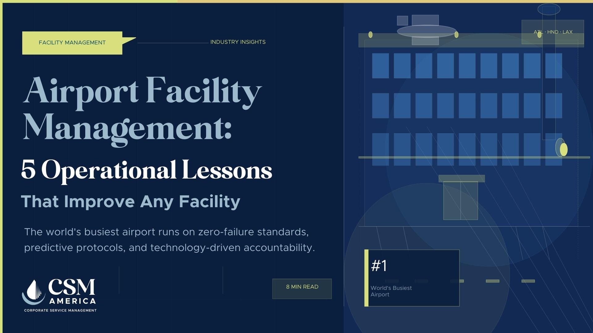 CSM America manages cleaning and facility services at Hartsfield-Jackson Atlanta International Airport, the world's busiest. The standards required to operate at that level aren't just impressive. They're a proven playbook for what's possible when facility management is treated as a strategic function rather than a back-office cost.